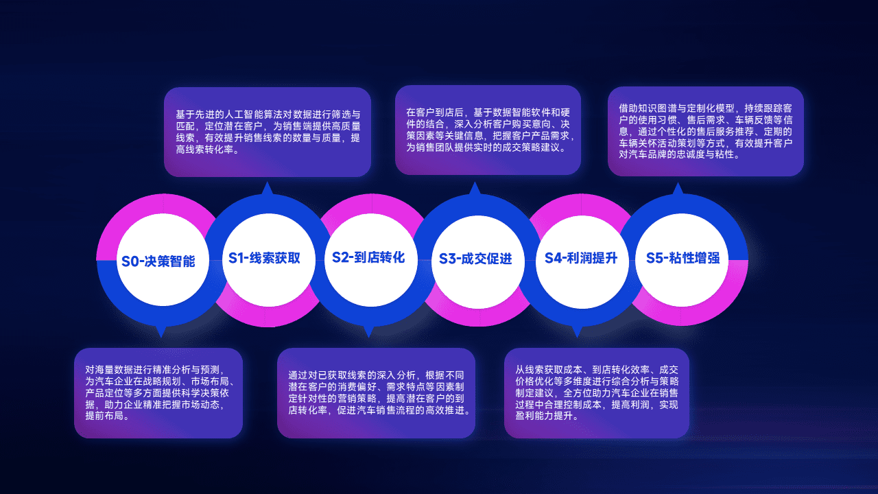 通过拓宽潜在客户来源、、优化线索分配并提高到店转化率,,以增强销售效率。。。同时,,,,利用线索数据不断优化分析模型,,有效提升转化率,,,,扩大营销影响力。。。